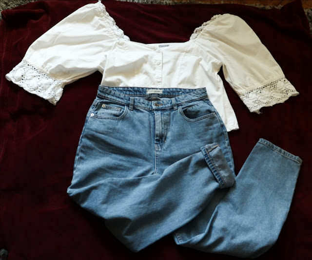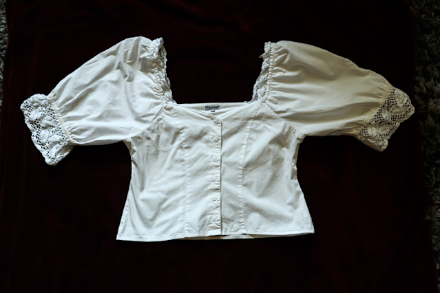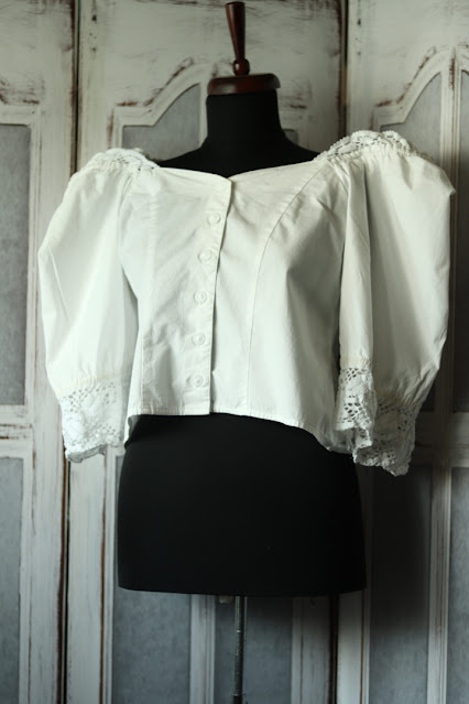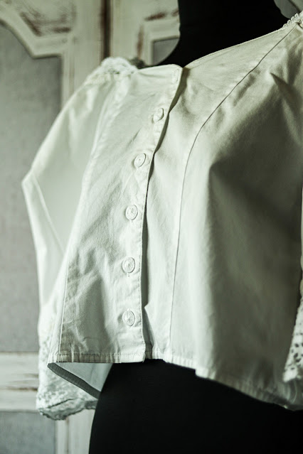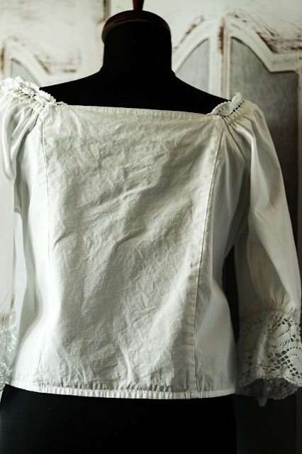 Bluză feminină,cu detalii romantice.Broderie spartă pe mâneci și pe baza umerii.Cu nasturi îmbrăcați.Decolteul și spatele destul de adânc.Realizată din 100% bumbac,material respirabil,lejer pentru vară.Se potrivește atât cu blugi (de exp cu blugii din postare detalii aici ),cât și cu fuste.Versatilă.