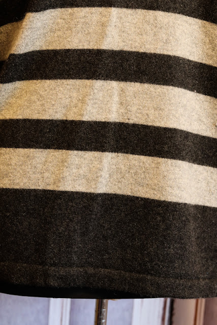 100% CAȘMIR-Bluză cu decolteu în V în dungi gri melanj/antracit,măr.M/L,......70 Ron
