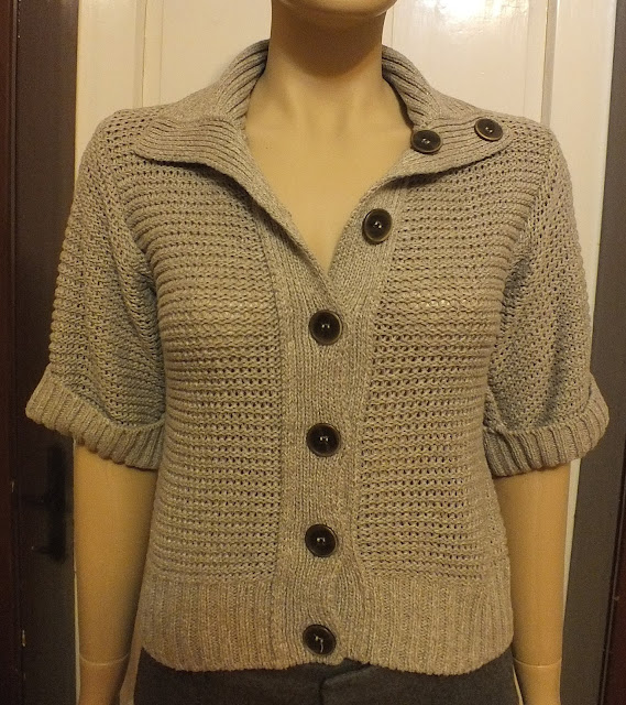 Bluză tricot gri deschis (ca pe manechin) cu nasturi maro,cu mâneci 3/4,semnată Bonita.Bluză ușoară,modernă,se poate purta și separat sau cu o cămașă dedesubt.Textură de grosime medie,merge în orice anotimp. Mărime: S/M Stare: excelentă Compoziție material: 60 % bumbac,40% poliacril Dimensiuni: