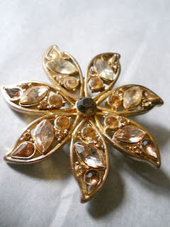Brosa din metal auriu, masiva, cristale galbene si maro cognac