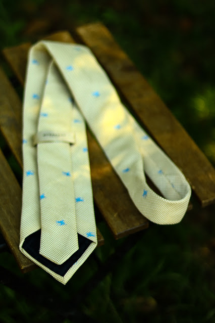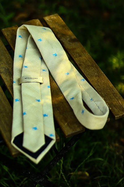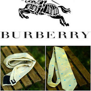 Cravată BURBERRY LONDON bej cu logoul firmei de culoare albastră pe toată cravată,realizată din 100% mătase naturală.Produs autentic!