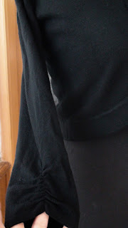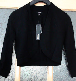 Foarte finut, elegant, negru, scurt, fara sistem de inchidere, i se poate atasa o brosa dar sta foarte bine si fara sa fie inchis, se asaza de la sine.