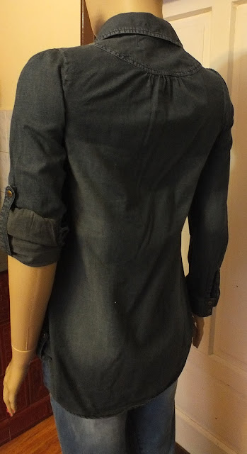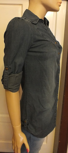 Mânecile acestei cămăși se pot îndoi și prinse cu nasturi aurii.Au un aspect ușor decolorat.
