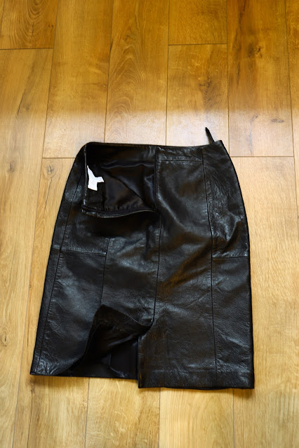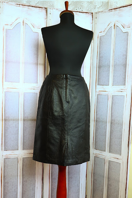 Fustă neagră semnată Elegance Paris,realizată din 100% piele naturală.Este căptuşită.Cu şliţ în spate + fermoar ca sistem de închidere.