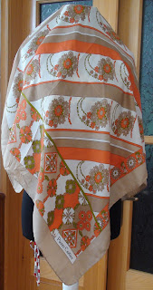 Marime: mare, o esarfa extrem de fina si eleganta, in nuante de alb, crem, vernil si portocaliu cald.