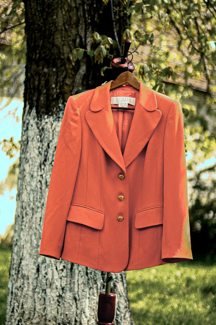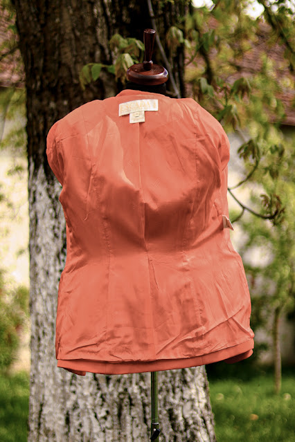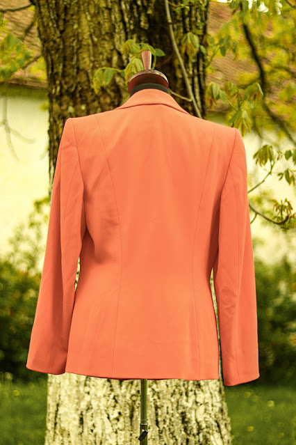 Sacou vintage ESCADA by Margaretha Ley de calitate superioară,realizat din 100% lână virgină,de culoare vibrantă: corai -nu orange-în realitate mult,mult mai frumoasă culoarea.Cu nasturi aurii,buzunare frontale cu clapetă.Frumos foc,o piesă de colecție!