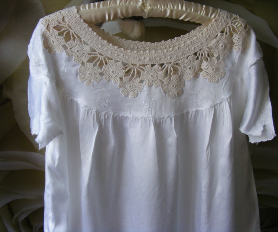 Fusta Saint Tropez, din tulle foarte fin cu accesoriu brodat in partea din fata si margelute aplicate pe tiv. Captuseala bej-aurie din satin de vascoza .