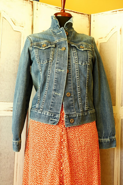 Jachetă denim GAP,un must-have în garderoba de primăvară/vară.O piesă vestimentară versatilă,care nu se demodează niciodată,arată bine combinată cu practic orice,de exp cu rochia din postare.