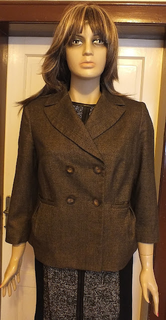 Tailor-ul din această prezentare este de culoare maro auriu - ca pe ultima poză-,cu mâneci 3/4,cu buzunare în față,închidere cu nasturi.Se asortează atât la pantaloni cât și la fuste/rochii.Este semnat de firma Mexx.În realitate mult mai frumos.