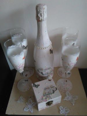 ... un set de pahare decorate prin tehnica decoupage-ului pentru miri si nasi...