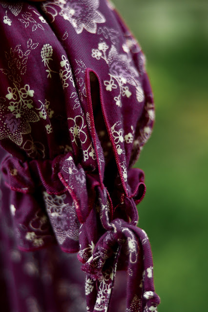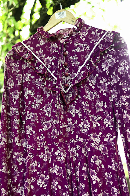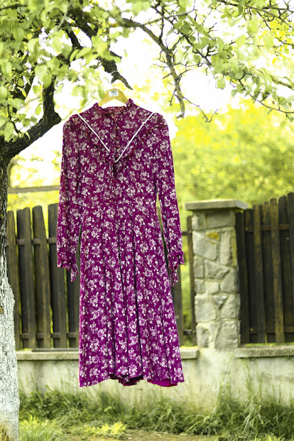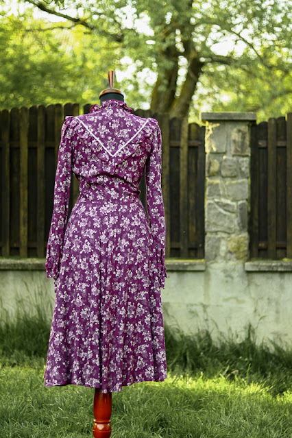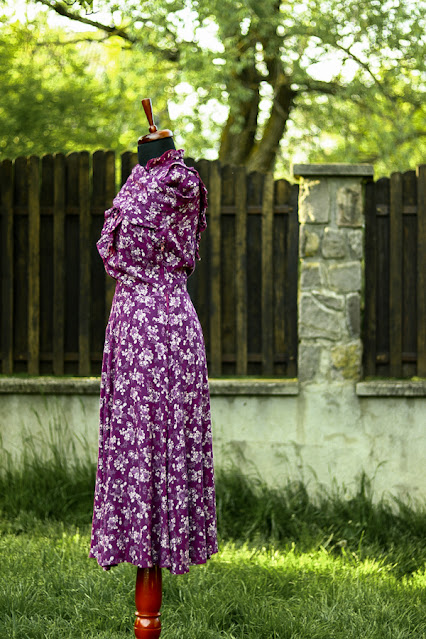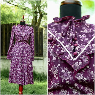 Rochie vintage spectaculoasă midi din anii '70,feminină,cu volănașe .Fusta căptușită,fermoar lateral ca sistem de închidere,de culoare magenta.