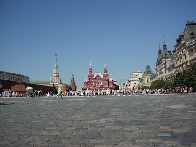E destul de nasol sa prinzi Moscova intr-o Sambata pentru ca strazile par pustii. Am apucat totusi, avand ragaz de o zi pana la continuarea odiseei ceferistice, sa vedem Piata Rosie cu catedrala Sf. Vasile si palatul Kremlin. Dadusem un telefon in prealabil dar Vladimir mi-a zis ca are antrenament la judo si Dimitri a dat-o in diverse ca are nu stiu ce proiecte de lege de analizat. In fine, ne-am descurcat si fara ei.