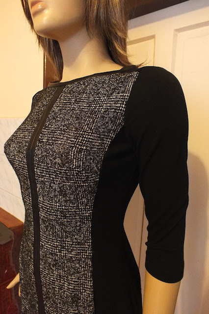Rochie superbă de ocazie,de lungime medie,model drept,căptușită,cu fermoar lung în spate,mâneci 3/4,comodă,ușor cambrată în zona taliei.Material combinat cu piele ecologică- detalii pe poze.A fost purtată o singură dată la un botez.Superbă de tot!