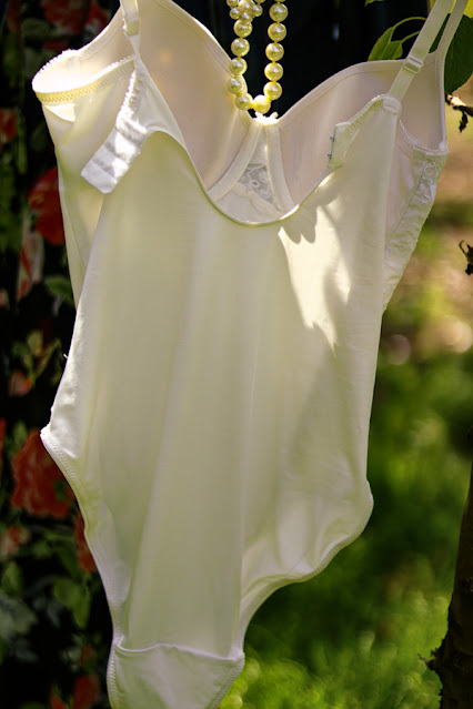 Body Skin to Skin alb,cu o formă bine adaptată corpului.Bretele reglabile,se închide între picioare cu copci (moș-babă),cupa are 75B - se potrivește mărimii,cu burete.