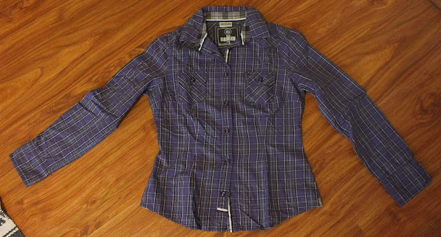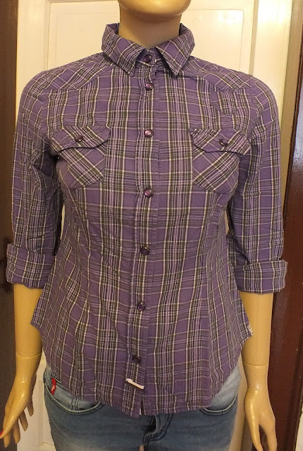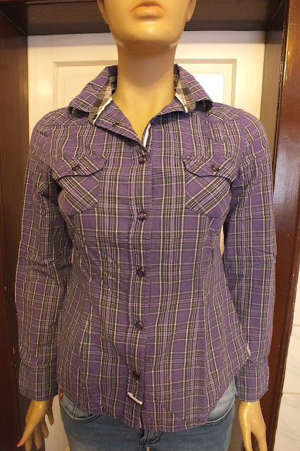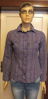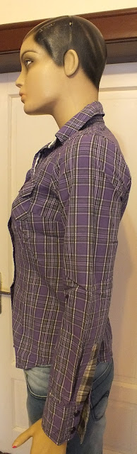 Cămașă casual din bumbac,în carouri lila cu gri ( ca pe manechin),ușor cambrată zona taliei,cu capse sidefate de culoare lila,semnată Street One.