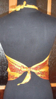 Material: matase naturala, culoare galbena cu imprimeu rosu-burgundy, model unic.