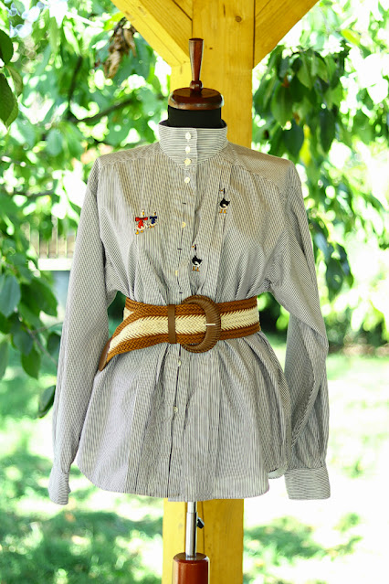 VAN LAACK-Cămașă în dungi gri/alb, din bumbac foarte drăguță.