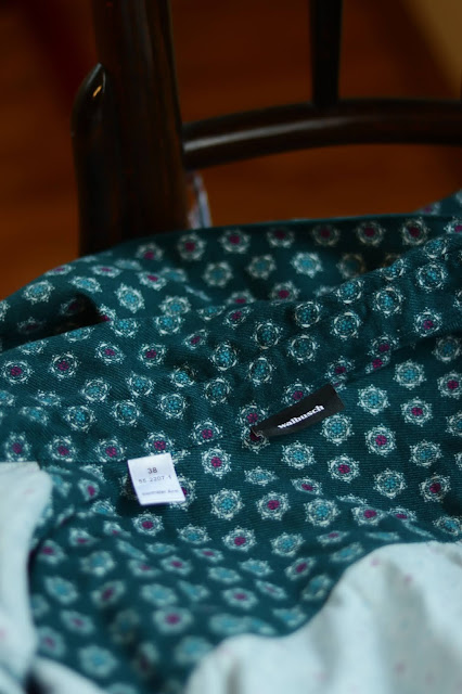 Cămașă Walbusch, din bumbac gros,calitativ. Culoarea de bază este un verde smarald,cu print magenta/verde.Realizată în Vietnam.