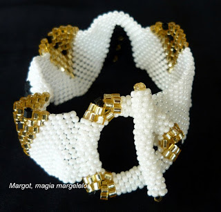 Pentru ca rosul m-a inspirat catava vreme, am creat aceasta bratara alcatuita din segmente lucrate in herringbone si altele insirate. Margelele sunt de sticla, 2mm de un rosu irizat. Pret 40 lei
