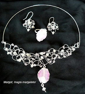 Set realizat din sarma placata cu argint, cristale roz , transparente ab si agate roz. Pret:65 lei